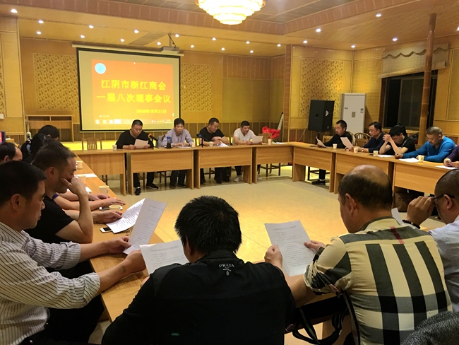 10月21日,江阴市浙江商会一届八次理事会议在会员单位——浙江金华磐安县维新乡溪下路村跃龙门农庄召开。会议由特邀顾问、原工商联(总商会)副主席(副会长)朱顺清主持。