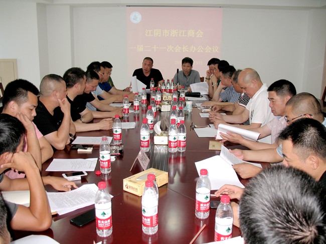 2017年6月9日,江阴市浙江商会一届二十一次会长办公会议在商会会议室召开,会议由会长林维忠主持,原工商联副主席、特邀顾问朱顺清出席会议。