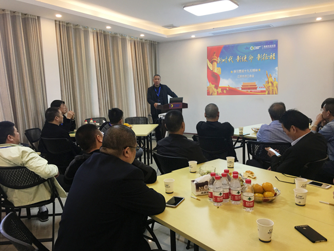 为深入学习贯彻党的十九大精神,更好地推进商会各项工作,10月27日上午,江阴市浙江商会组织副会长以上人员等23人,在林维忠会长单位江苏奥斯特滤清器制造有限公司,开展党的十九大精神学习交流会,深刻领会十九大关于支持民营经济发展的重要论述。