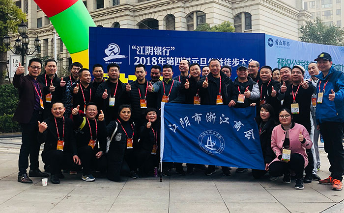 1月1日清晨,2018年江阴市第四届元旦公益徒步大会在市体育中心举行。沐浴着新年的第一缕阳光,江阴市浙江商会组织40余人的团队在会长林维忠的带领下和5000余名市民一起参加公益徒步活动,徒步健身、传递爱心、传播文明,弘扬“更快、更高、更强”的体育精神,以更加健康的体魄和更加昂扬的精神,投身建设“强富美高”新江阴。无锡市委常委、江阴市委书记陈金虎宣布第四届元旦公益徒步大会开幕,市长蔡叶明作新年致辞。