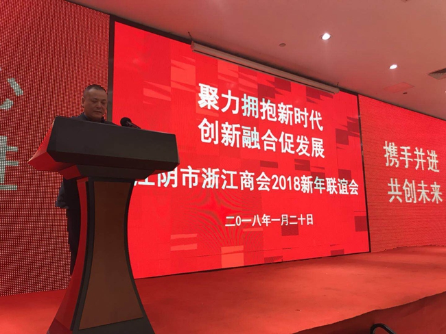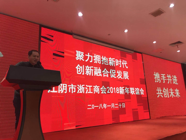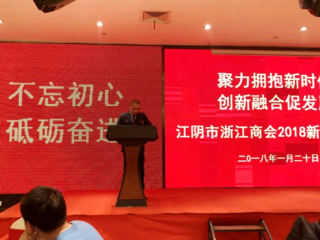 江苏省浙江商会秘书长姚岩清在会上致辞,他首先代表浙商总会江苏商会、江苏浙商联盟、江苏省浙江商会向江阴市浙江商会全体会员和所有在澄浙商致以诚挚的问候。姚秘书长说,江阴市浙江商会作为在苏浙江籍商会的翘楚,在江阴市委、市政府的领导下,抢抓发展机遇,勇于开拓,敢于创新,致力于加强江阴、浙江两地的经济合作,积极宣传推介江阴,为江阴的经济社会发展作出了积极的贡献。姚秘书长希望江阴市浙江商会进一步加强与联盟兄弟商会的合作与交流,共同推动浙商事业更好更快发展。