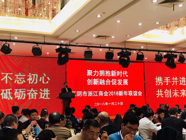 1月20日,“聚力拥抱新时代创新融合促发展”江阴市浙江商会2018新年联谊会在昊柏国际酒店昊柏厅隆重举行。在这辞旧迎新之际,在澄浙商欢聚一堂,畅叙乡情,共话未来。