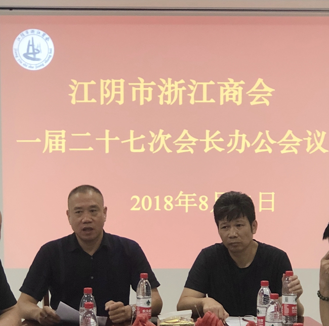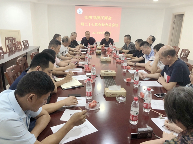 8月31日,江阴市浙江商会一届二十七次会长办公会议在商会会议室召开,会长林维忠主持会议,商会顾问朱顺清应邀出席会议。