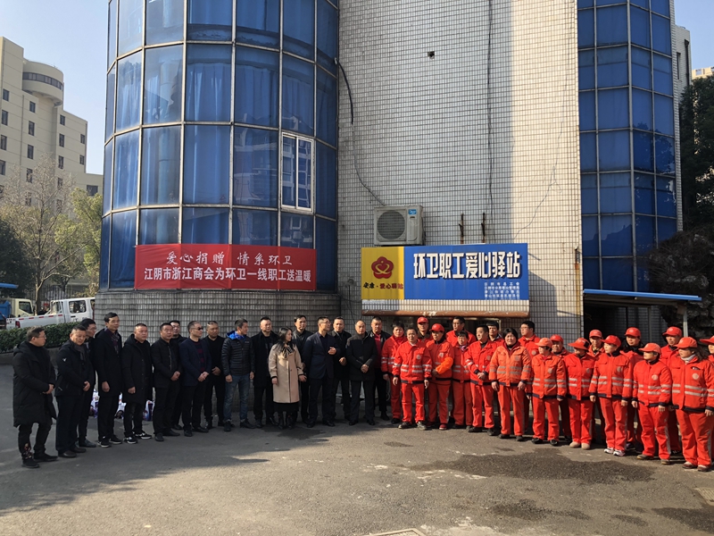 江阴市浙江商会副会长兼副秘书长尤思方代表商会向严冬季节仍奋斗在一线的环卫工作者致以诚挚慰问和衷心感谢,是他们的辛劳扮靓了我们的城市。呼吁社会各界都能关心、支持环卫事业,尊重、爱护他们的劳动成果,建设和维护我们共同的美丽家园。