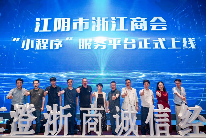接着,副会长陈振宇将“小程序”服务平台向大家作了推介,并邀请免费入驻。“小程序”上线启动仪式正式开始,工商联副主席金锡妹和商会会长班子成员一起按下启动按钮宣告江阴市浙江商会“小程序”服务平台成功上线。