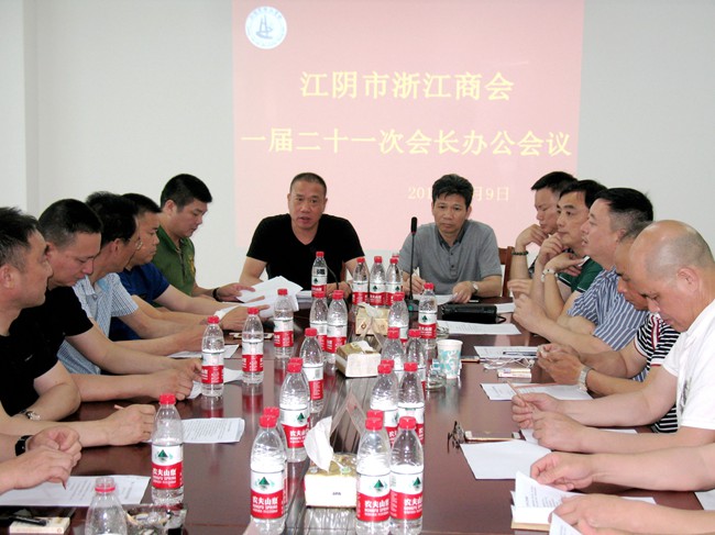 2017年6月9日,江阴市浙江商会一届二十一次会长办公会议在商会会议室召开,会议由会长林维忠主持,原工商联副主席、特邀顾问朱顺清出席会议。