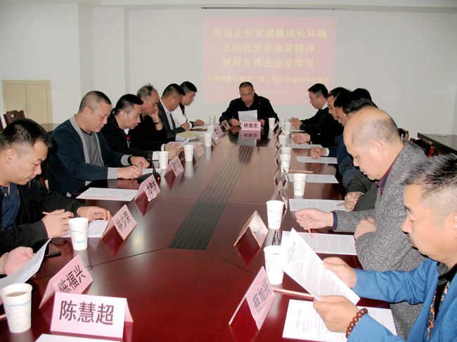 10月17日,江阴市浙江商会召开一届二十三次会长办公会议,学习领会《中共中央 国务院关于营造企业家健康成长环境弘扬优秀企业家精神更好发挥企业家作用的意见》精神,会议由会长林维忠主持。