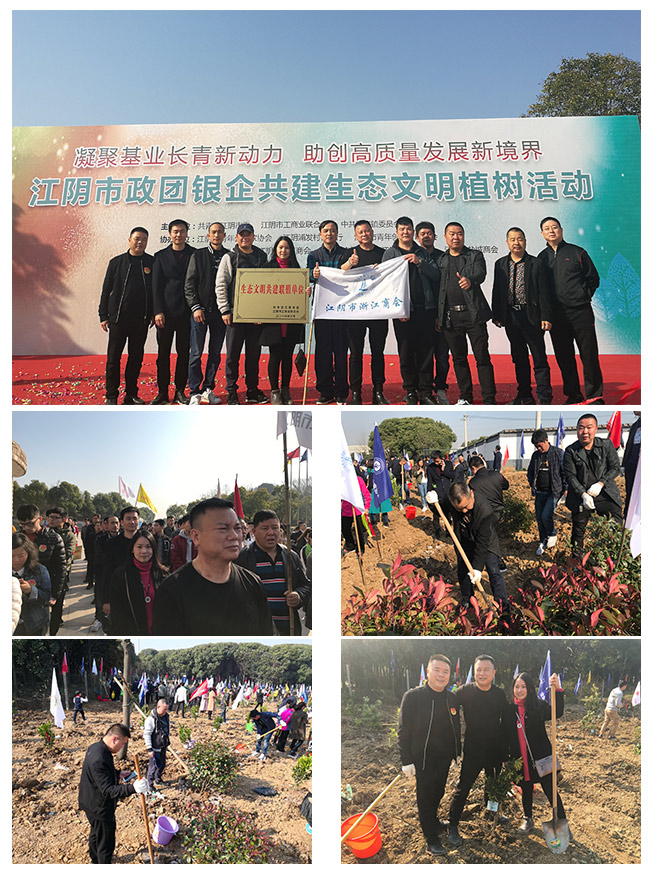 2018年3月13日,江阴市浙江商会常务副会长、副会长及部分理事13人参加了由工商联、团市委和周庄镇在华宏生态园共同举办的江阴市政团银企共建生态文明植树活动。